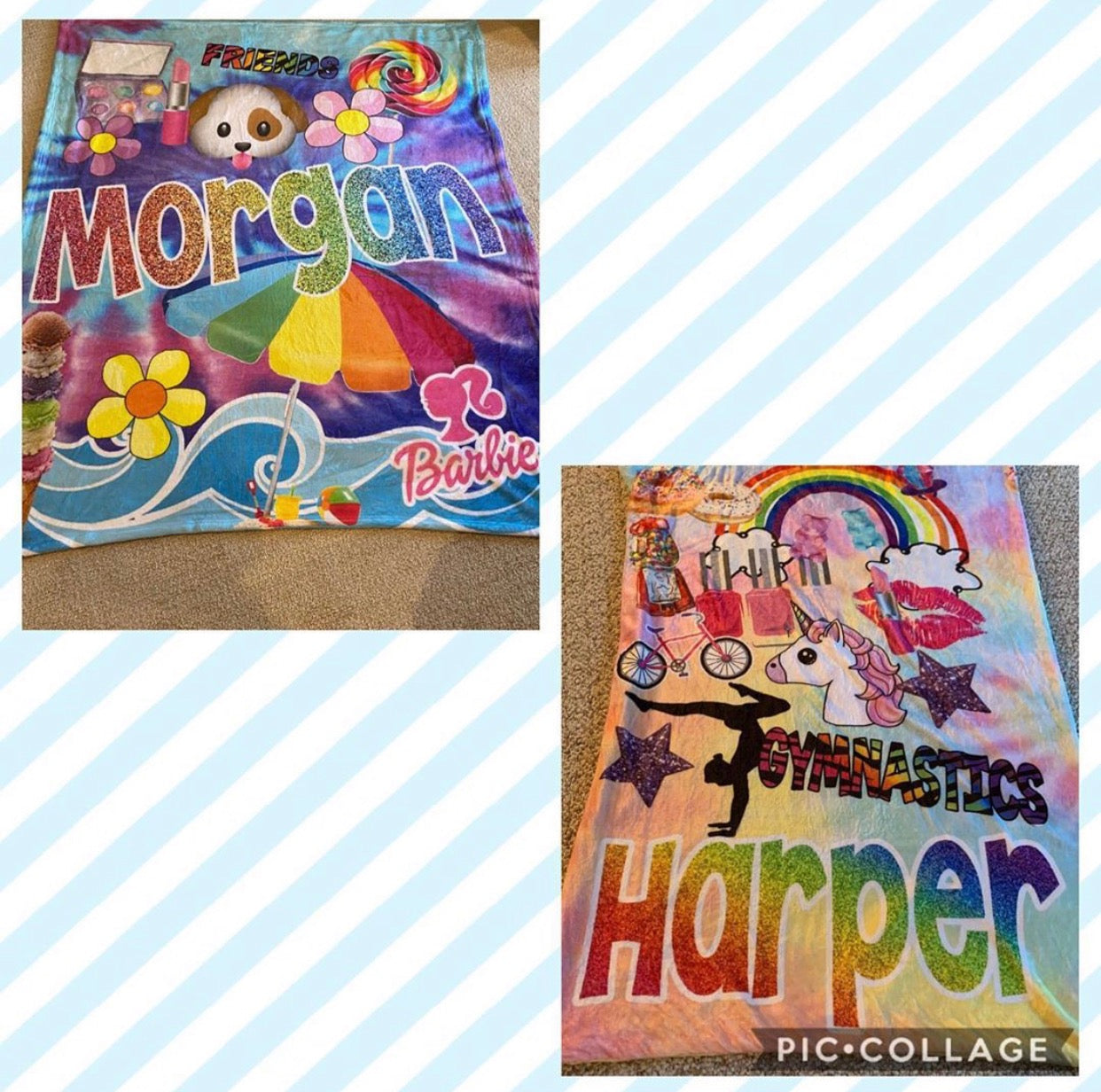 What makes you happy? A few of your favorite things on a blanket! Choose 10-15 items to create your own! Tell us about you! Some things to add your name, your camp, any interests, food, sports, emojis, etc very plush and super soft! Anything that makes you, you!